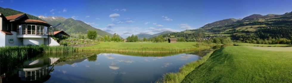 An 18-hole course – par 70, old hay barns in flat terrain, doglegs, ponds, a small stream that accompanies you the entire round and as the crowning glory a par 3 island green – directly in front of the sunny clubhouse terrace; afterwards in the clubhouse – culinary delicacies and all around – the Salzburg mountains. Furthermore, a spacious driving range with pitching and putting greens, a golf school, a pro shop, changing rooms, shower facilities and a professional secretariat – functional and practical, and the most important thing of all – you! Because your satisfaction is our success! Dogs welcome on the course!