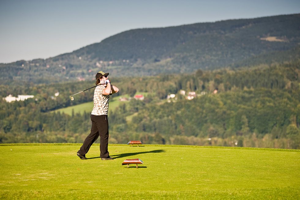 The Golf course is located between the two highest peaks in the Beskydy mountains, Lysá hora and Smrk, and at the foot of the Žár Mountain in Ostravice. This is a par 72 master golf course, in the parkland style. The course’s designer and construction engineer is Chris Johnson, who has constructed many golf courses across Europe and Africa. His experience is reflected in the selection of the location, the shape of the course, the strictly tested and controlled building material, the irrigation system, the spacious greens, and three hectares of water features, five types of tees at every hole, and so on.