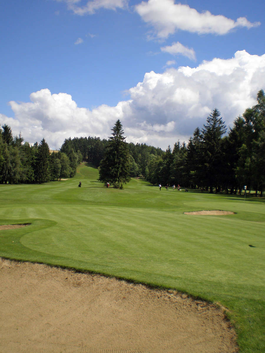 The course is located in the Ceskomoravska region, a very mountainous landscape. The fairways are bordered on either side by dense forest, which makes teeing off very interesting.