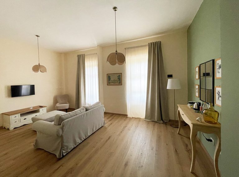 In the large farmhouse, the scent of the past is still fresh in the rough stone and old terracotta floors, the vaulted ceilings, the exposed beams, the fireplaces and the understated and warm style of the rooms. Where barns and haylofts once were now stand rooms, suites and flats.